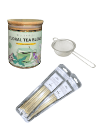 damiana leaf, burdock root, calendula, ginger root, raspberry leaf